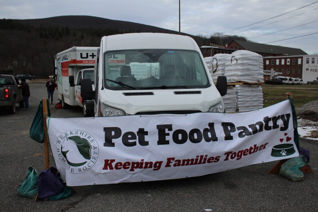 Berkshire Humane Society’s Food Pantry events are part of the nonprofit’s efforts to keep families together and prevent people from feeling they must surrender their pet to the shelter. Other programs include the shelter’s monthly Pet Food Bank, to which drive-thru recipients may enroll; low-cost spay and neuter and other veterinary services at the Society’s Wellness Clinic; and dog obedience classes at Family Dog School.